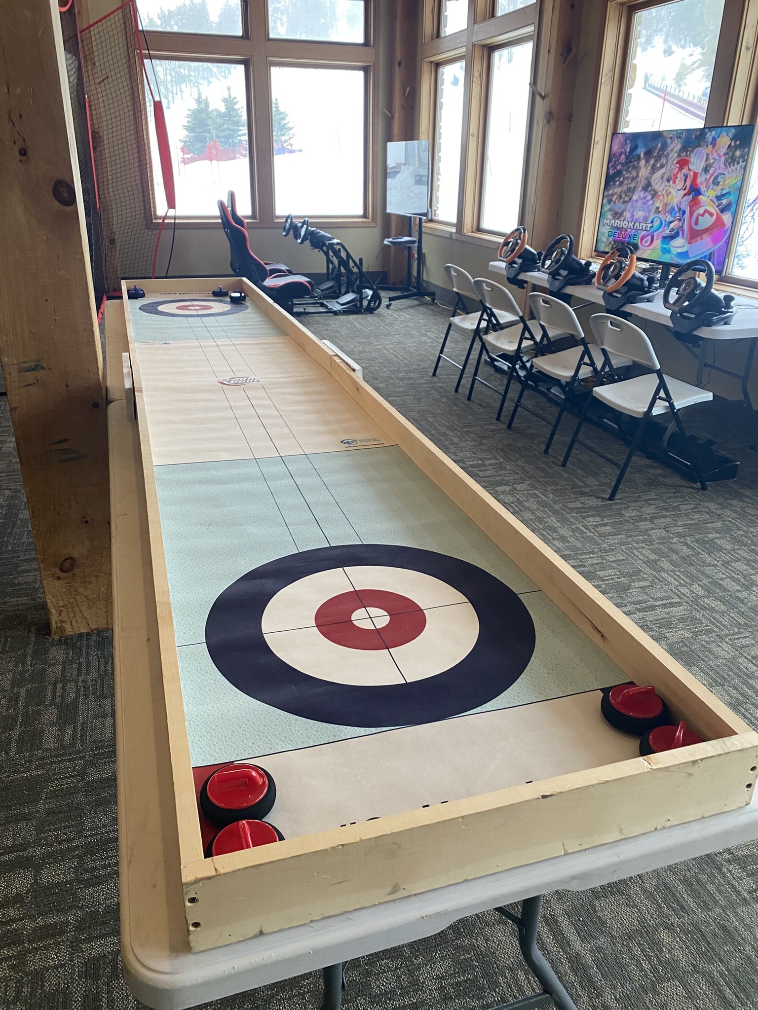 Requiring 12′ by 3′, this curling board is a ton of fun.