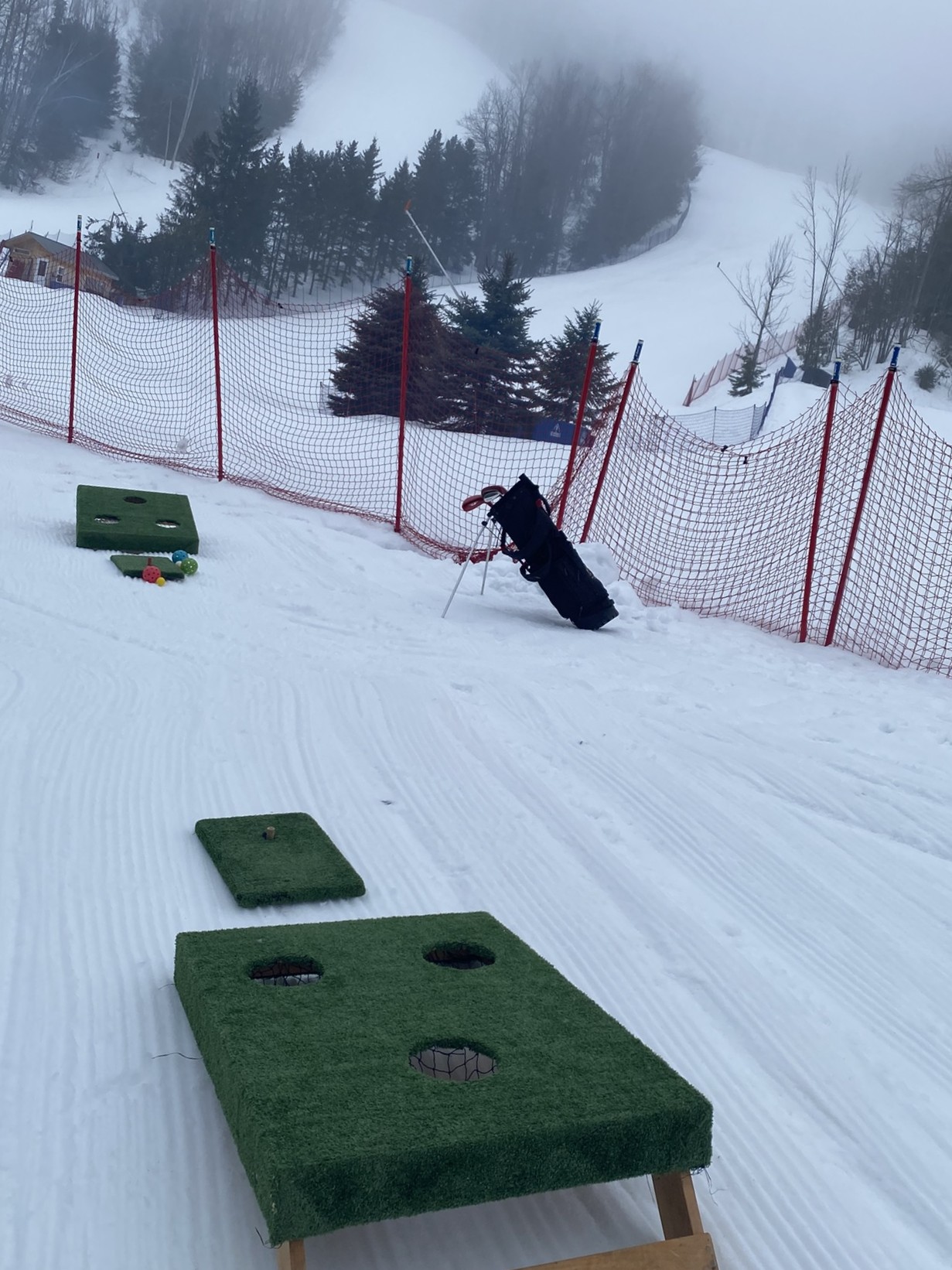 Test your skills by trying to chip the ball in the cups.