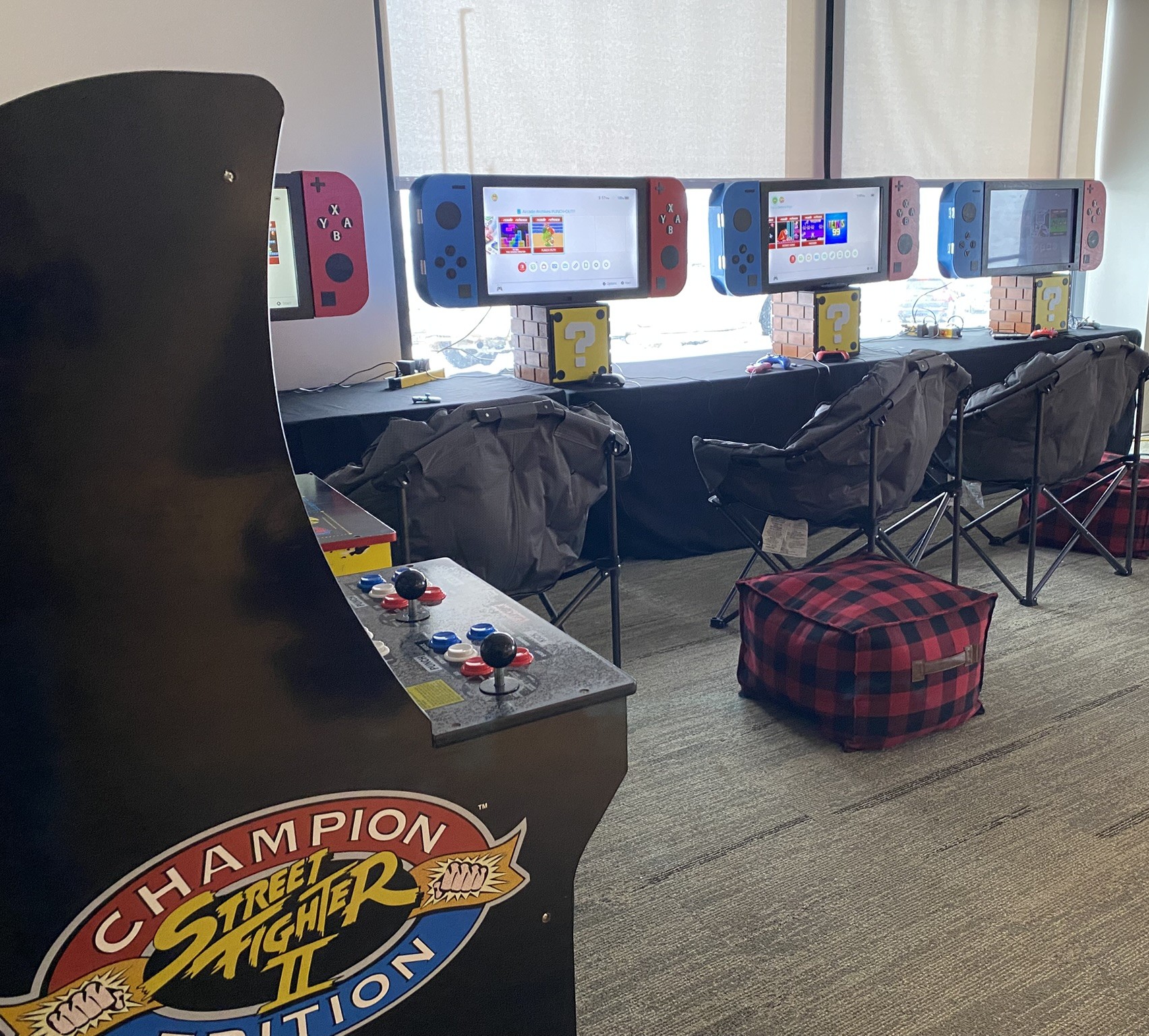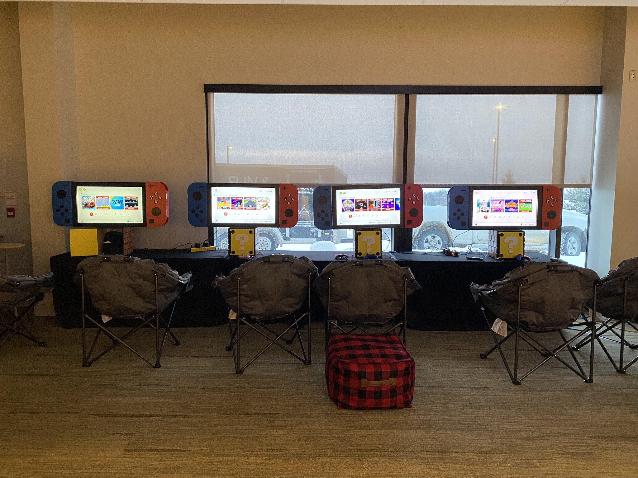 We have 4 of these huge Nintendo Switch’s. They rent for $150 or $450 for all 4. All units have different games on them and they are as follows: