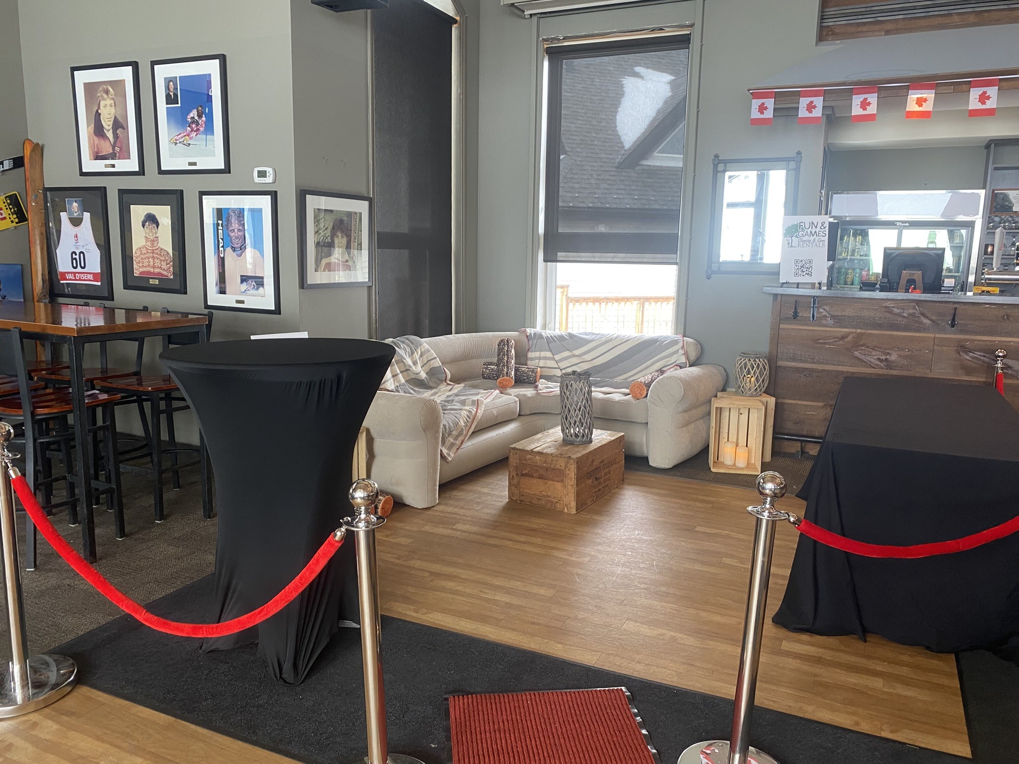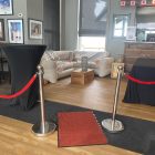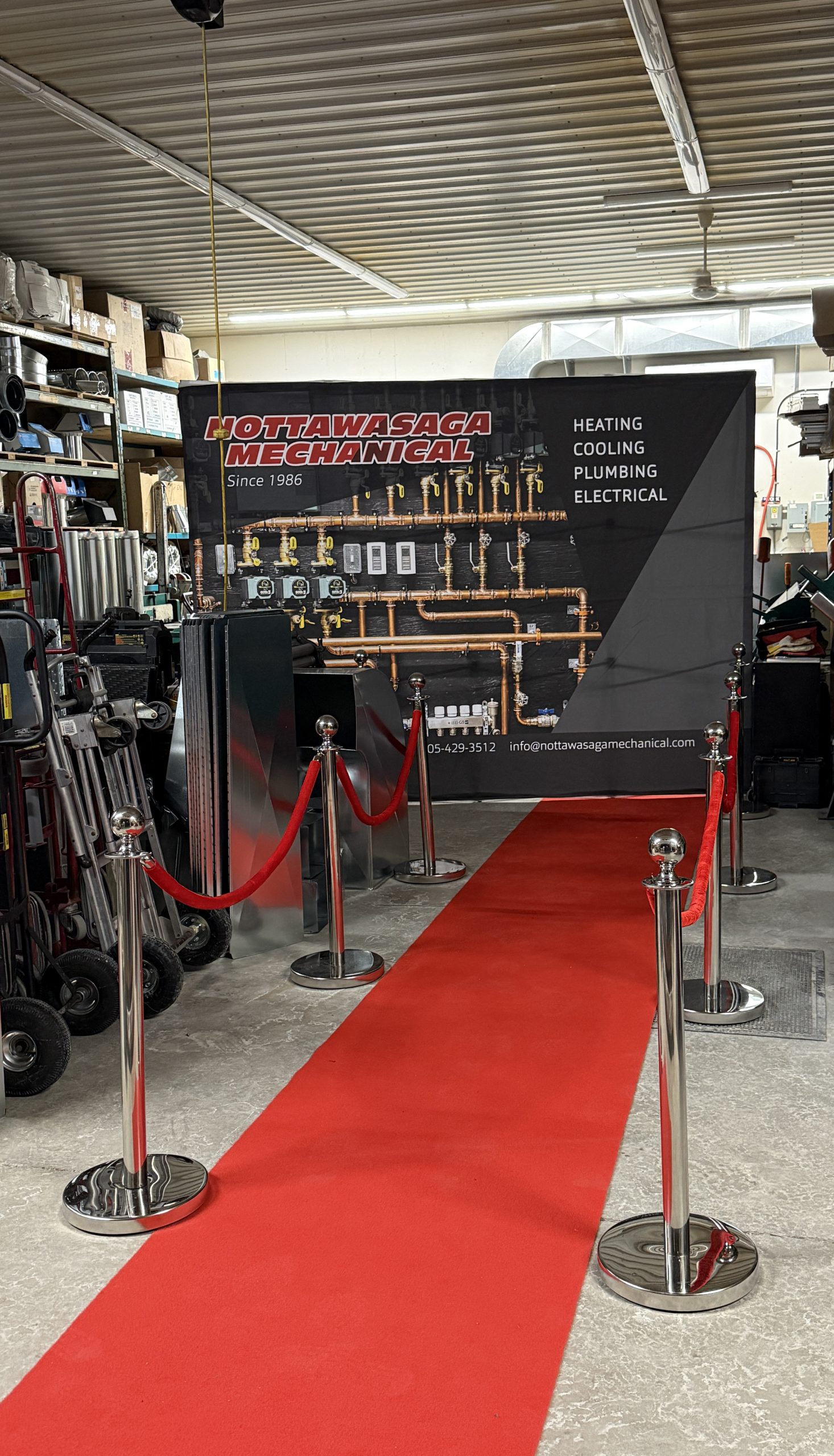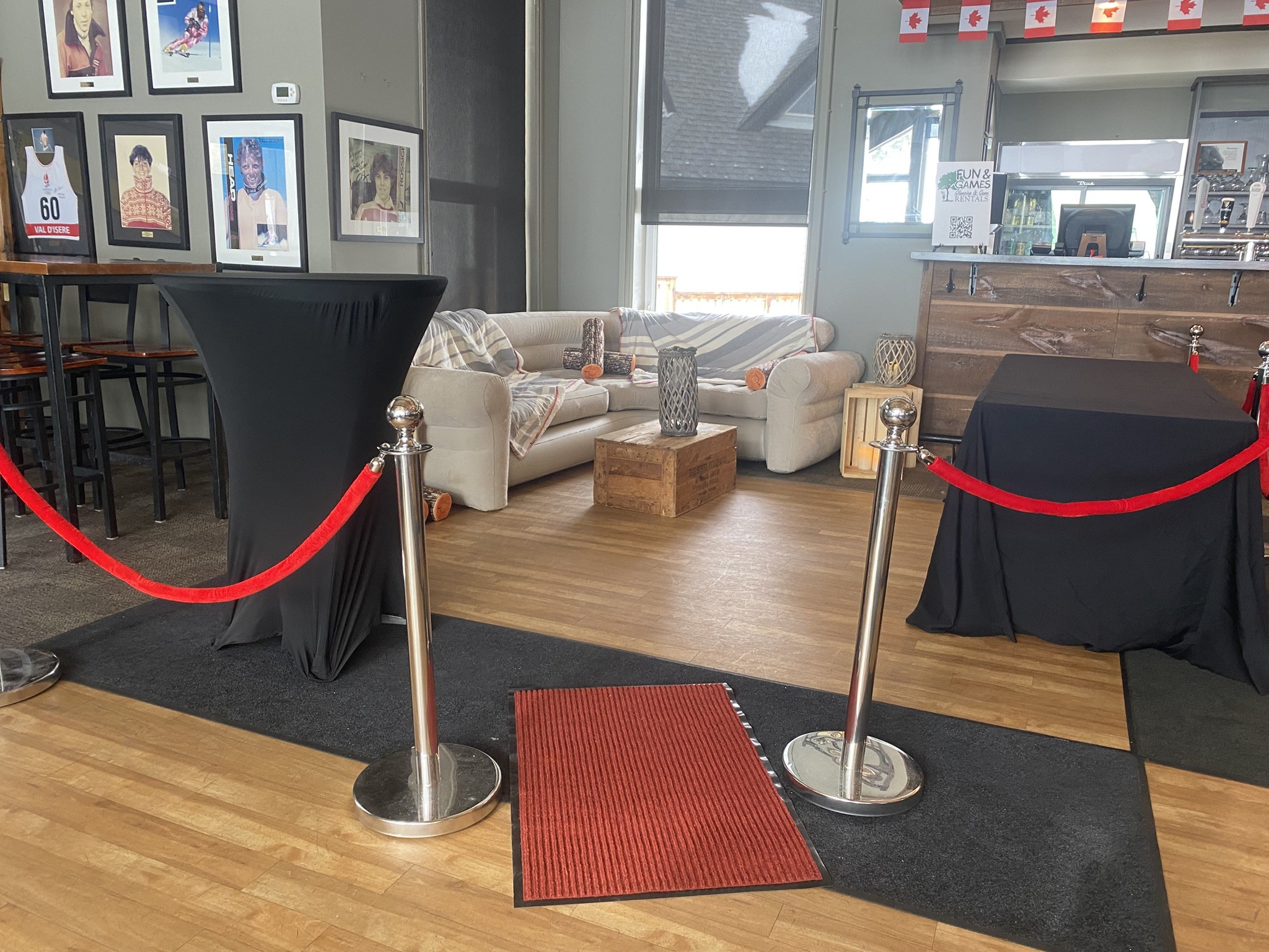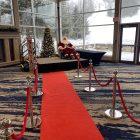 The Red Carpet is 3 feet wide by 20′ long. It comes with the 8 stainless steel stanchions and velvet rope.